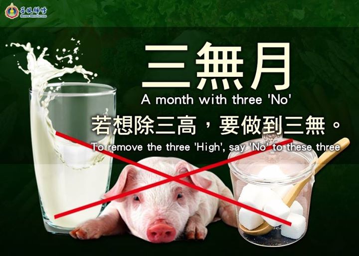 除三高,不吃奶、肉、糖。